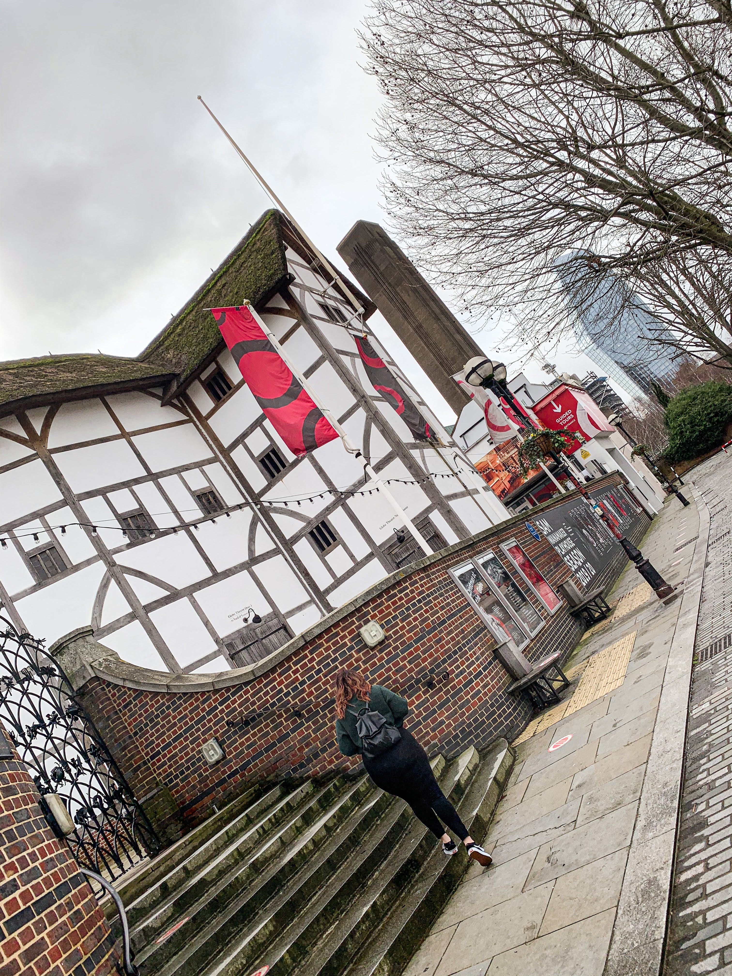Our third stop was Shakespeare’s Globe, this was one of the most interesting places I had been to when I was last here in October. I took a tour of the globe, I had a Midsummer’s Night Dream themed tea, and watched a Midsummer’s Night Dream play performed. My Literature major heart was soaring! Going back yesterday was a completely different experience! There were no tours being held, the gates to the courtyard were closed, the restaurant that served afternoon teas was not open, and they definitely were not performing any plays. It was probably a bit reminiscent of when the play houses were originally closed in the 1640’s by the Puritans, although now it’s currently closed due to the pandemic, which makes much more sense than to preserve the morality of the people of London.